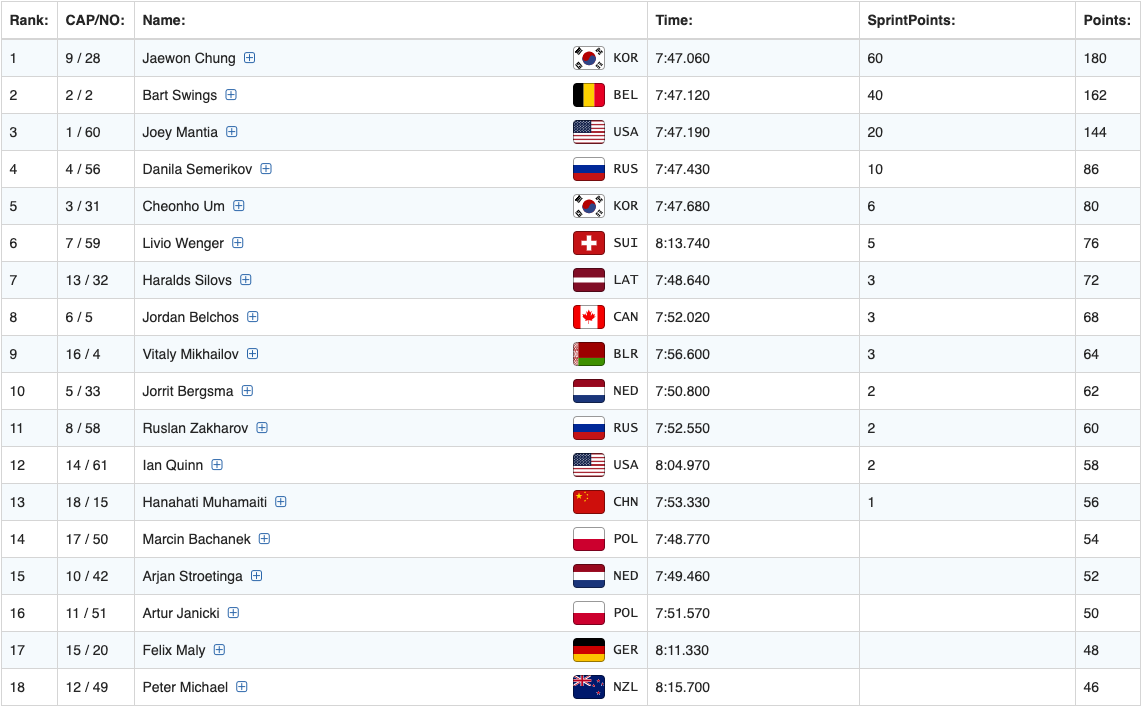 국제빙상연맹 ISU 스피드 스케이팅 월드컵 6차 대회(3/7~3/8) 파이널 남자 매스스타트에서